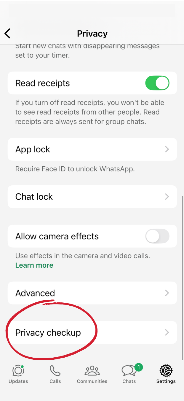 Click through privacy check up prompts, to double check everything. WhatsApp will suggest additional privacy settings.